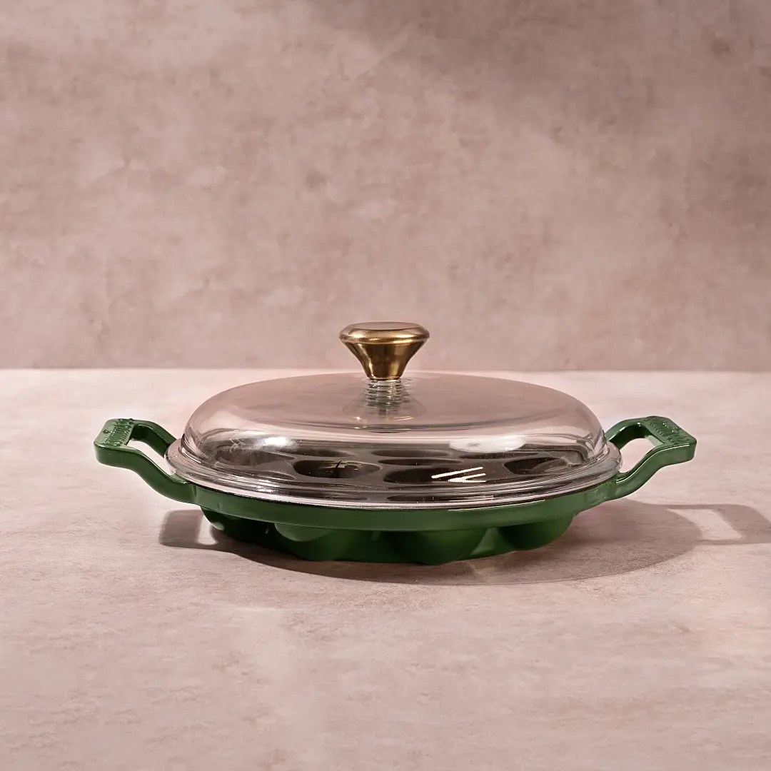 Versatile and precise, this Paniyaram Pan brings traditional flavours to your modern kitchen. Crafted from enamel cast iron with our Enviromax Pro titanium enamel coating, it ensures even cooking, easy release, and long-lasting durability. Perfect for making crisp, golden paniyarams, appe, or koftas with soft, fluffy interiors every time.